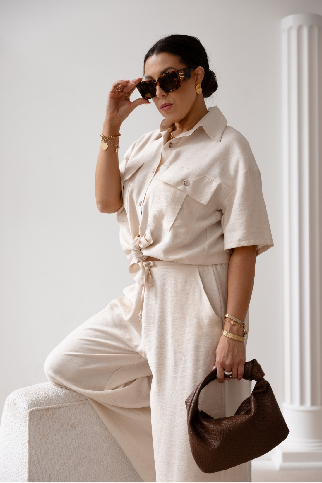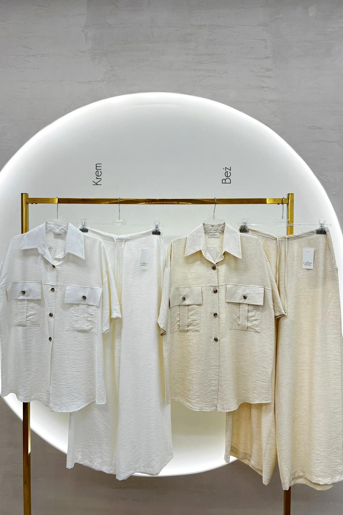KOMPLET WYMIARY KOSZULA: ROZMIAR: S Biust: 54 cm x2 Dł.całkowita: 75 cm Dł.rękawa: 46 cm ROZMIAR: M Biust: 56 cm x 2 Dł.całkowita: 75 cm Dł.rękawa: 47cm ROZMIAR: L Biust: 58 cm x 2 Dł.całkowita: 75 cm Dł.rękawa: 48 cm SPODNIE: ROZMIAR: S Pas: 34 cm x2 Biodra: 46 cm x 2 Dł.całkowita: 109 cm ROZMIAR: M Pas: 36 cm x 2 Biodra: 48 cm x 2 Dł.całkowita: 110 cm ROZMIAR: L Pas: 38 cm x 2 Biodra: 50 cm x 2 Dł.całkowita: 111 cm W PASIE UCIĄGAJĄ SIĘ DO OK 5 CM