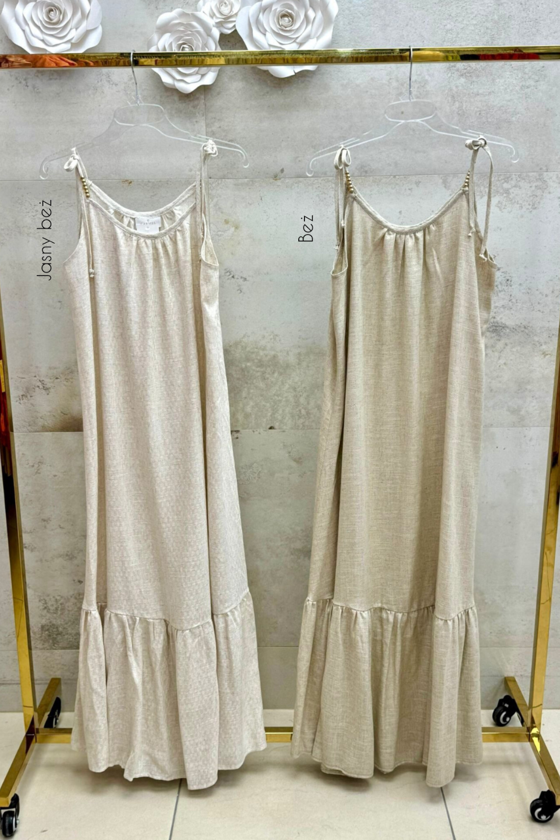 SUKIENKA VINTAGE LEN WYMIARY: ROZMIAR: S Biust: 48 cm x 2 Biodra: 66 cm x 2 Dł.całkowita: 123 cm ROZMIAR: M Biust: 50 cm x 2 Biodra: 70 cm x 2 Dł.całkowita: 125 cm ROZMIAR: L Biust: 54 cm x 2 Biodra: 72 cm x 2 Dł.całkowita: 126 cm REGULOWANE RAMIĄCZKA