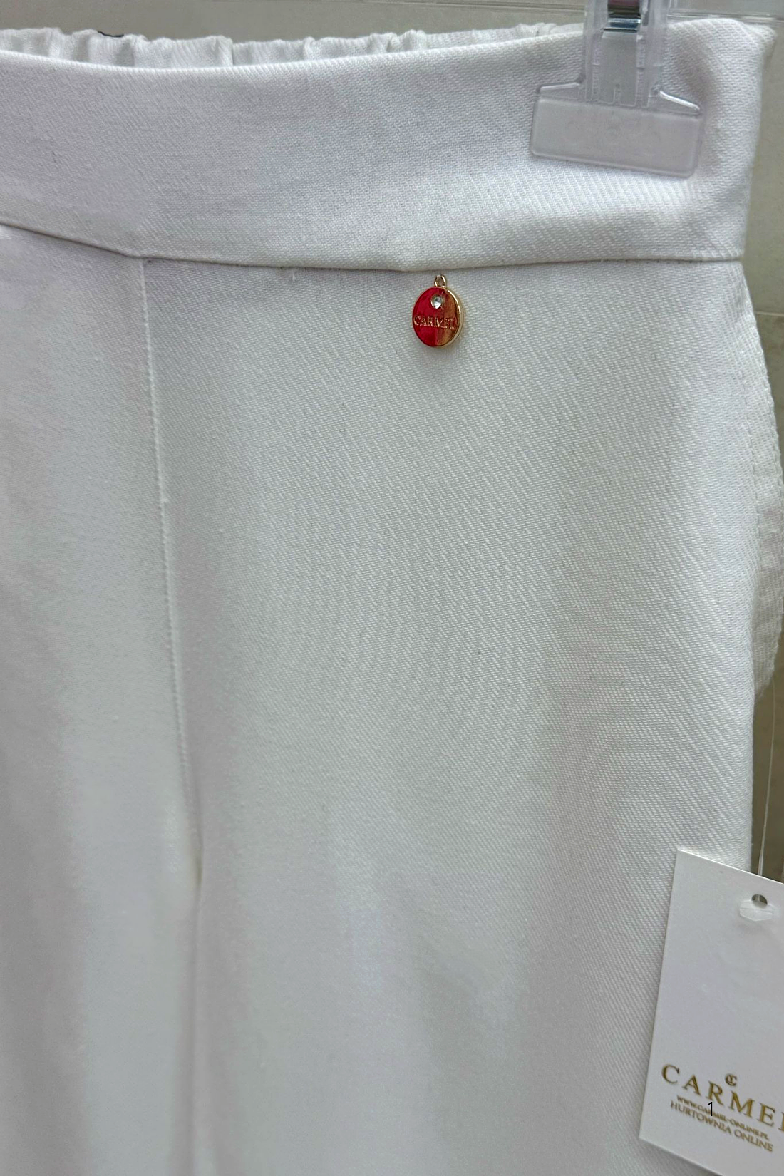 Model wyposażony jest w grubą gumę w pasie, która pięknie zbiera brzuch, formuje talię i modeluje sylwetkę. Dzięki elastyczności i sprytnemu krojowi spodnie dopasowują się aż do rozmiaru 42/44, co sprawia, że są niezwykle uniwersalne.
