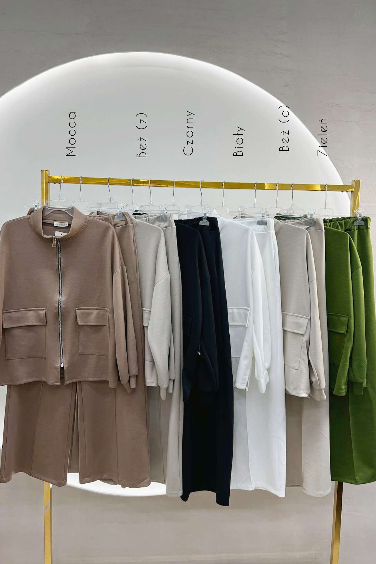 WYMIARY: BLUZKA: ROZMIAR: S Biust: 62 cm x 2 Dł.całkowita: 62 cm Dł.rękawa: 68 cm ROZMIAR: M Biust: 64 cm x 2 Dł.całkowita: 64 cm Dł.rękawa: 70 cm ROZMIAR: L Biust: 66 cm x 2 Dł.całkowita: 66 cm Dł.rękawa: 72 cm SPODNIE: ROZMIAR: S Pas: 34 cm x 2 Biodra: 44 cm x 2 Dł.całkowita: 103 cm ROZMIAR: M Pas: 36 cm x 2 Biodra: 46 cm x 2 Dł.całkowita: 104cm ROZMIAR: L Pas: 38 cm x 2 Biodra: 48 cm x 2 Dł.całkowita: 105 cm